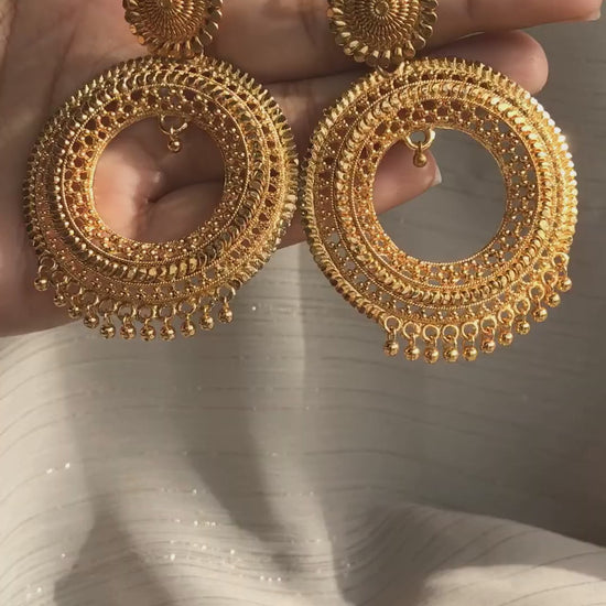 Illuminate your look with our stunning Sunburst Circle Hoops, crafted in an elegant Indian jewelry style. These statement earrings feature intricate handcrafted detailing inspired by traditional Rajasthani and Mughal artistry. Designed with a rich matte-gold finish, these hoops balance tradition and modern minimal glam, giving you a luxurious high-end look with effortless comfort.