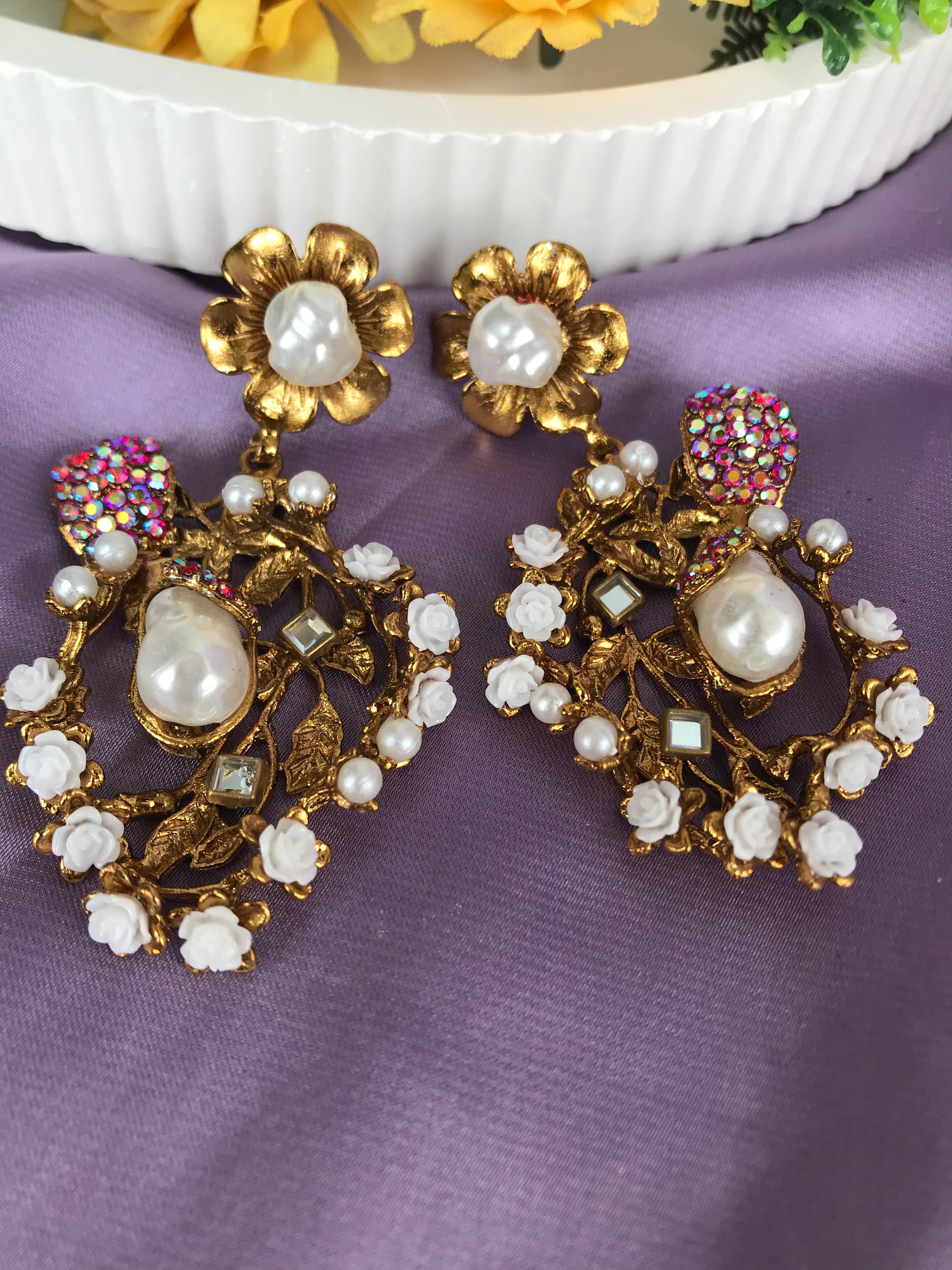 - Embellishments: Features large, high-luster Faux Pearls as central points, accented by clustered smaller pearls and tiny white floral motifs.