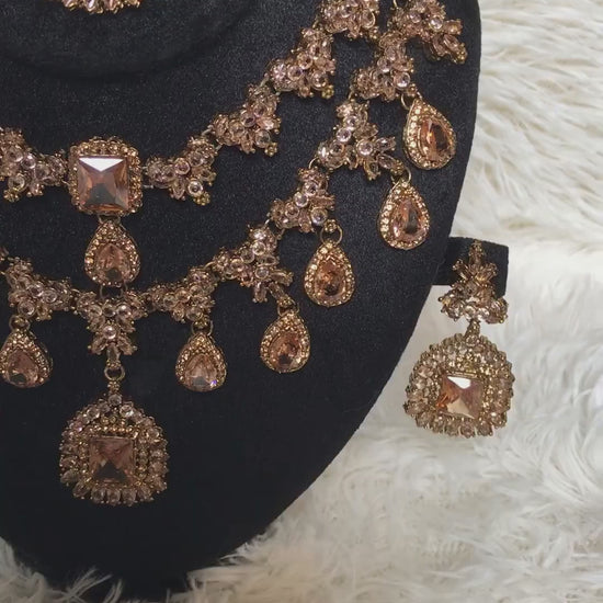 Elevate your bridal look with our Regal Amber Bridal Set, a luxurious blend of shimmering amber stones and antique-gold craftsmanship. Designed to add instant elegance and a royal glow, this set is perfect for brides who want timeless beauty with a modern charm.